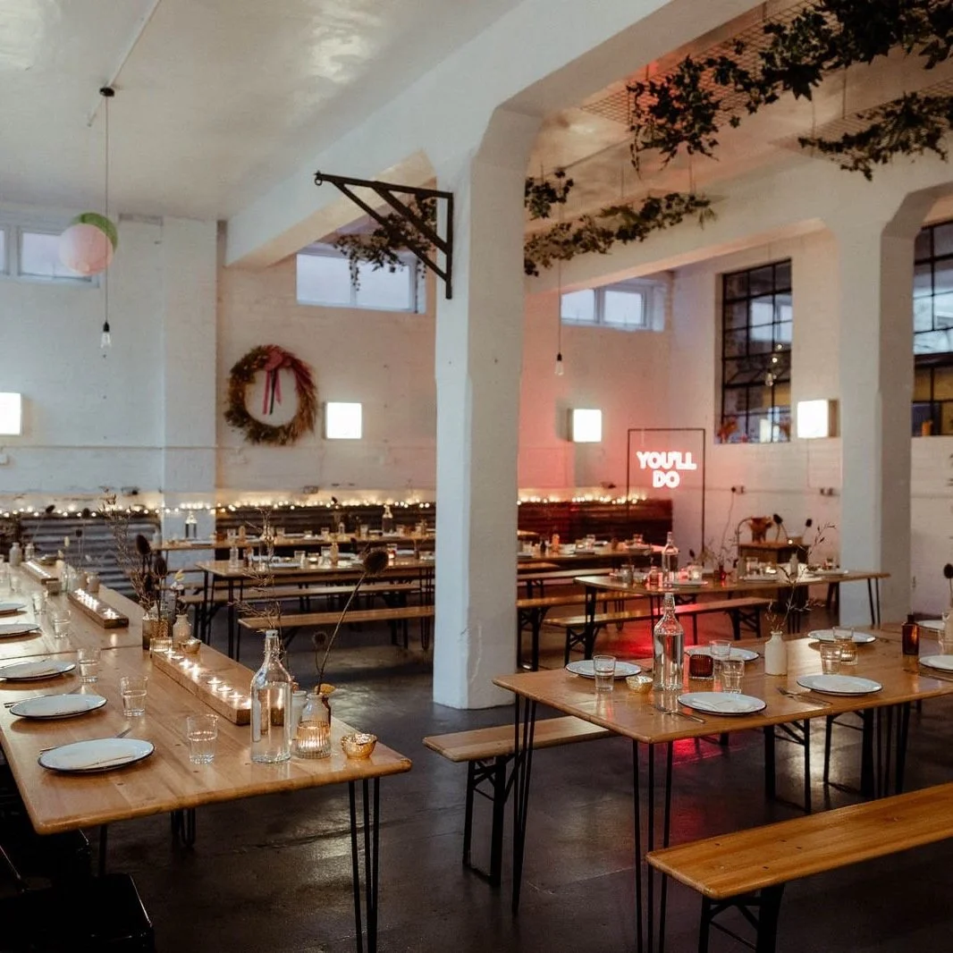 Step inside our yellow building to discover our candlelit warehouse wedding venue after dark. Chat to us about your plans and the possibility of having your wedding ceremony, party or both with us.